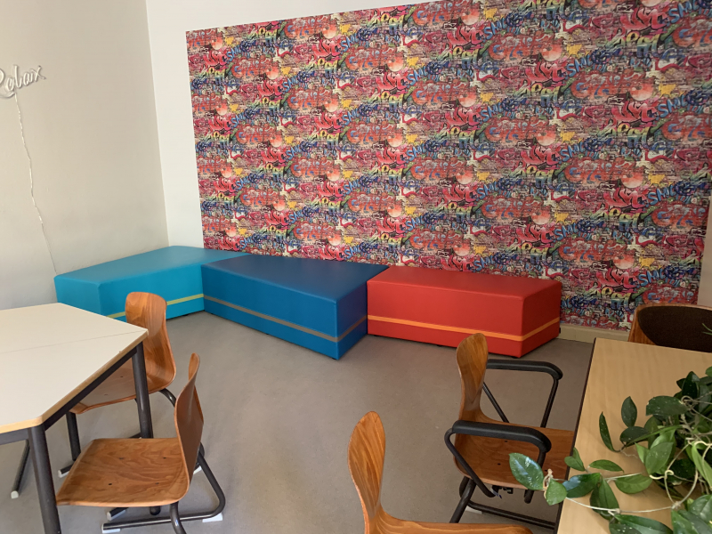 Jeder Klassenraum besteht aus zwei Räumen.